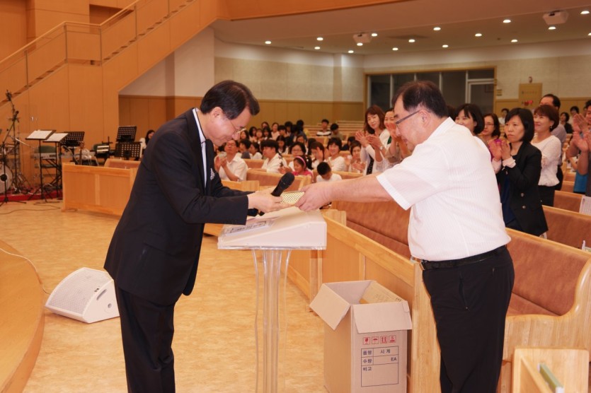 반장 진종식 집사님께 수료증과 선물을 전달합니다.