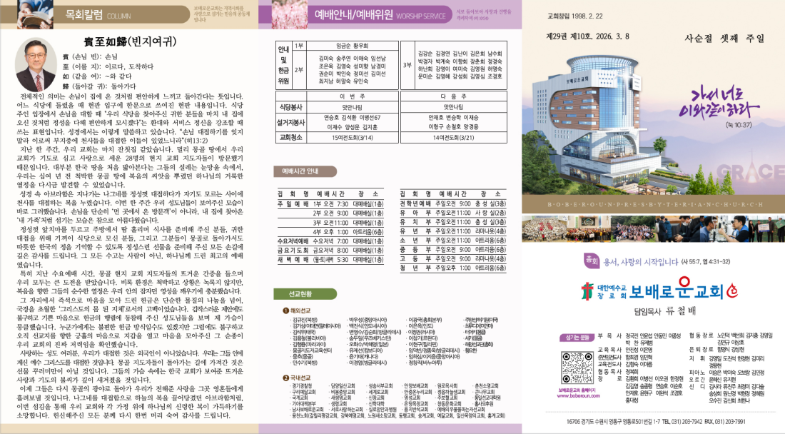 1) 사순절 셋째 주일 - 예수님의 십자가를 묵상하며 경건 훈련에 힘쓰시기 바랍니다.