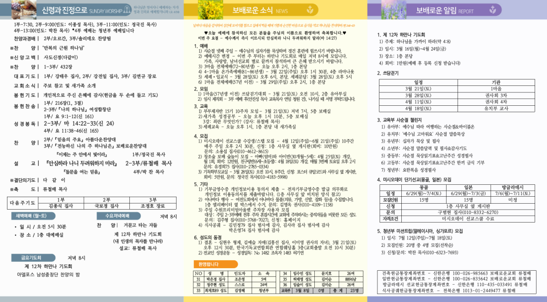 매주 주일 오후 2시 30분, 신청: 1층 사무실 옆 게시판(회비: 10만원)