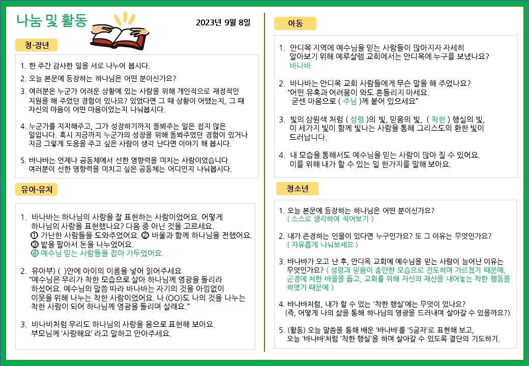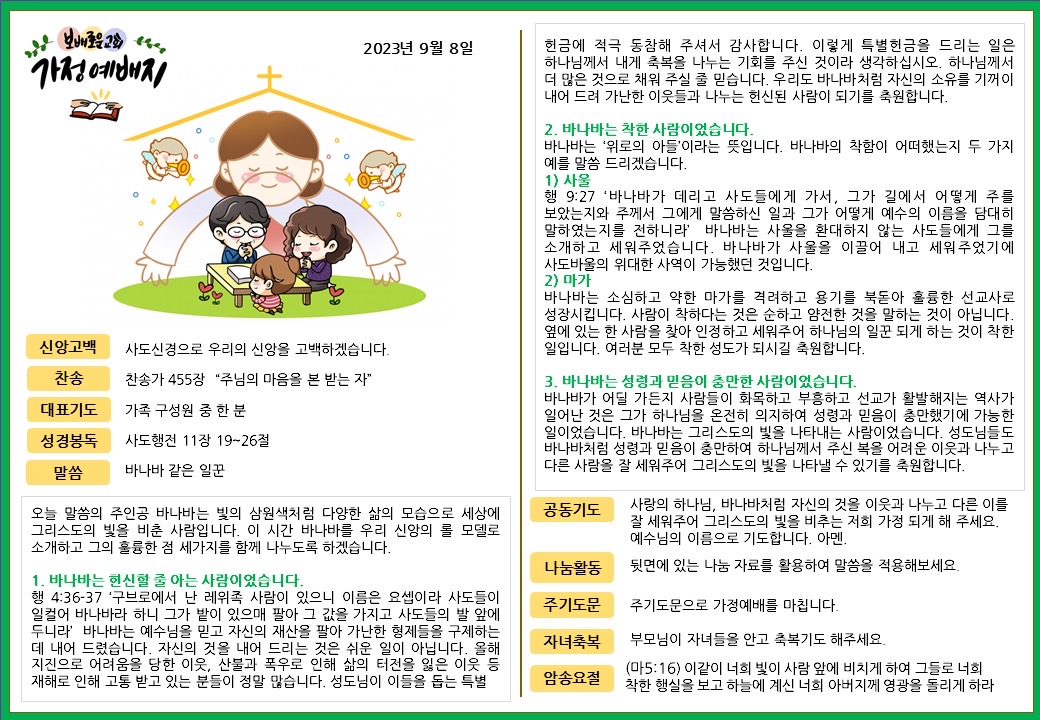 2023. 9. 8. 가정예배지 페이지 정보 조회Hit 347회 작성일Date 23-10-05 11:35 본문 목록 이전글2023. 9. 15. 가정예배지 23.10.05 다음글2023. 9. 1. 가정예배지 23.10.05