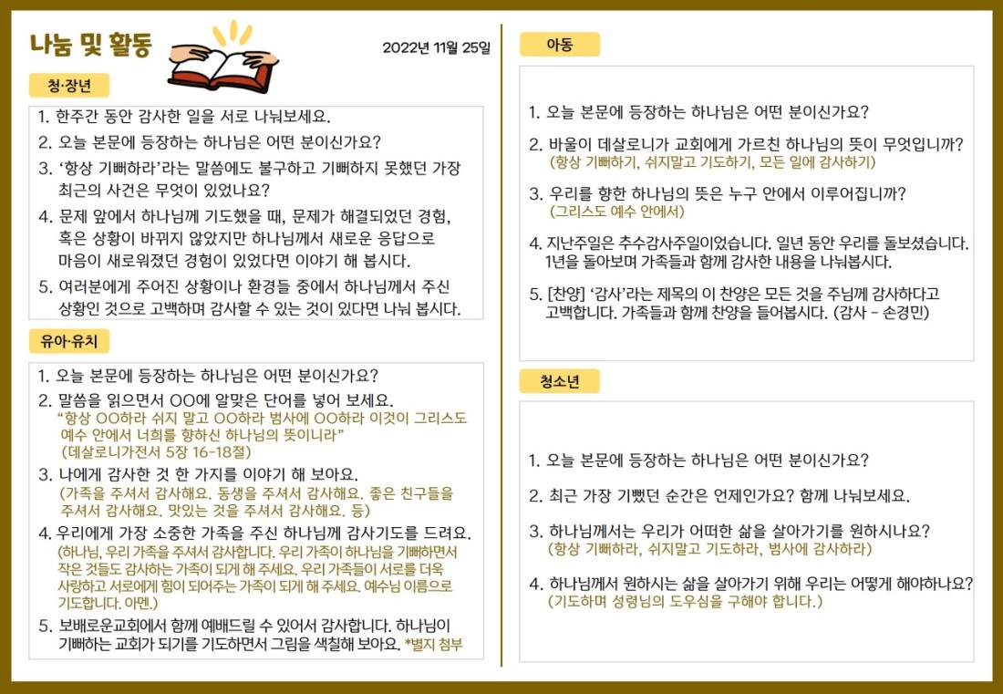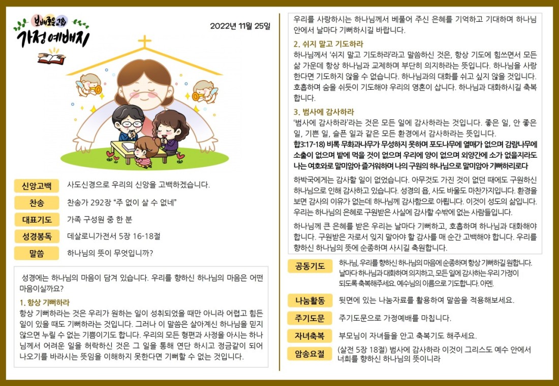 2022. 11. 25. 가정예배지 페이지 정보 조회Hit 314회 작성일Date 22-12-28 15:09 본문 목록 이전글 2022. 12. 2. 가정예배지 22.12.28 다음글 2022. 11. 18. 가정예배지 22.12.28