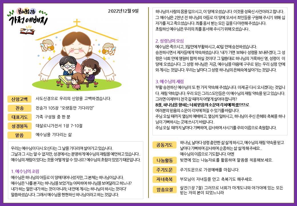 2022. 12. 9. 가정예배지 페이지 정보 조회Hit 310회 작성일Date 22-12-28 15:10 본문 목록 이전글 2022. 12. 16. 가정예배지 22.12.28 다음글 2022. 12. 2. 가정예배지 22.12.28