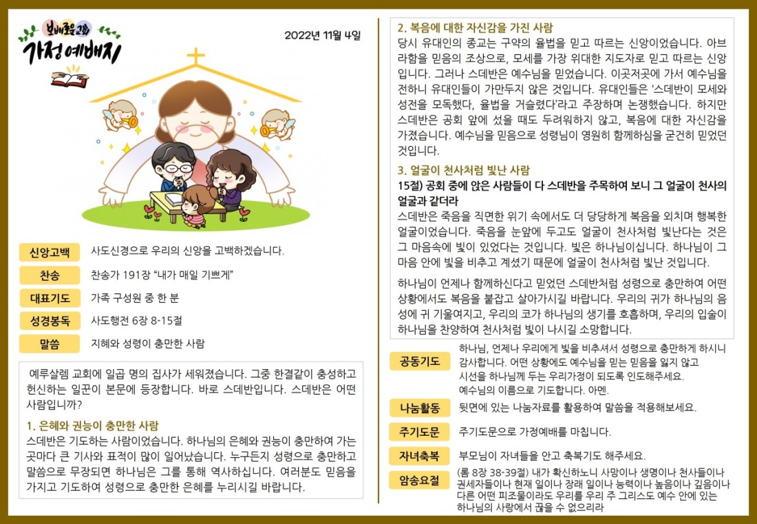 2022. 11. 4. 가정예배지 페이지 정보 조회Hit 314회 작성일Date 22-12-28 15:08 본문 목록 이전글2022. 11. 11. 가정예배지 22.12.28 다음글 2022. 10. 28. 가정예배지 22.12.28