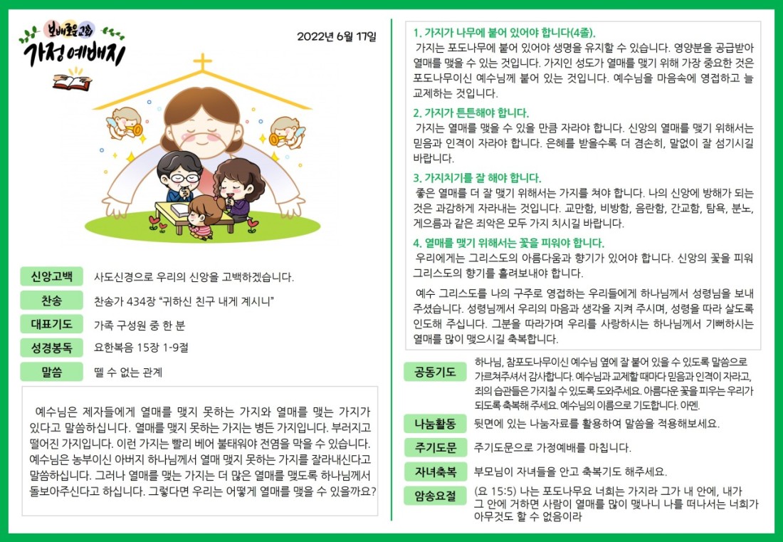 2022. 6. 17. 가정예배지 페이지 정보 조회Hit 351회 작성일Date 22-06-22 11:38 본문 목록 이전글2022. 6. 24. 가정예배지 22.06.22 다음글2022. 6. 10. 가정예배지 22.06.08