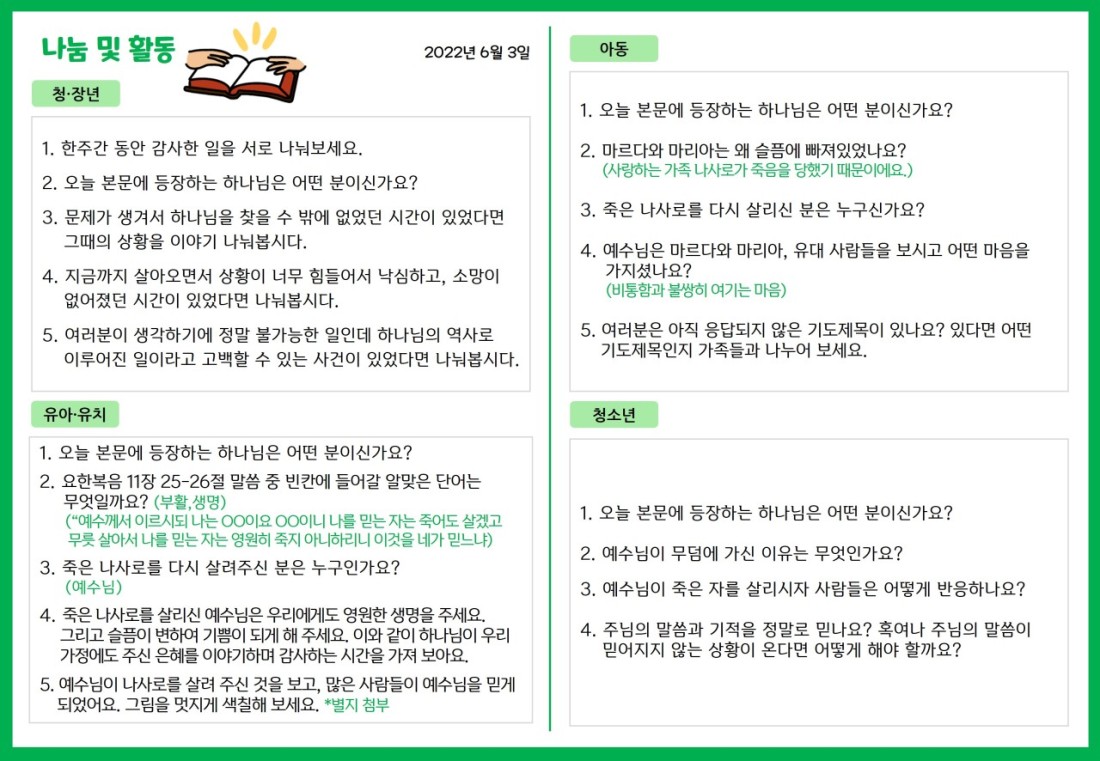 2022. 6. 3. 가정예배지 페이지 정보 조회Hit 343회 작성일Date 22-06-08 11:28 본문 목록 이전글2022. 6. 10. 가정예배지 22.06.08 다음글2022. 5. 27. 가정예배지 22.06.08