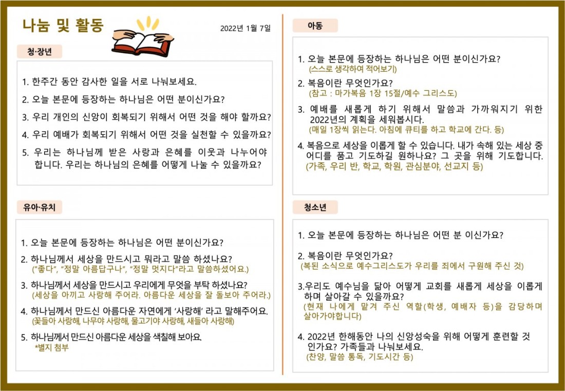 2022. 1. 7. 가정예배지 페이지 정보 조회Hit 386회 작성일Date 22-01-05 11:41 본문 목록 이전글 2022. 1. 14. 가정예배지 22.01.12 다음글2021. 12. 17. 가정예배지 21.12.16