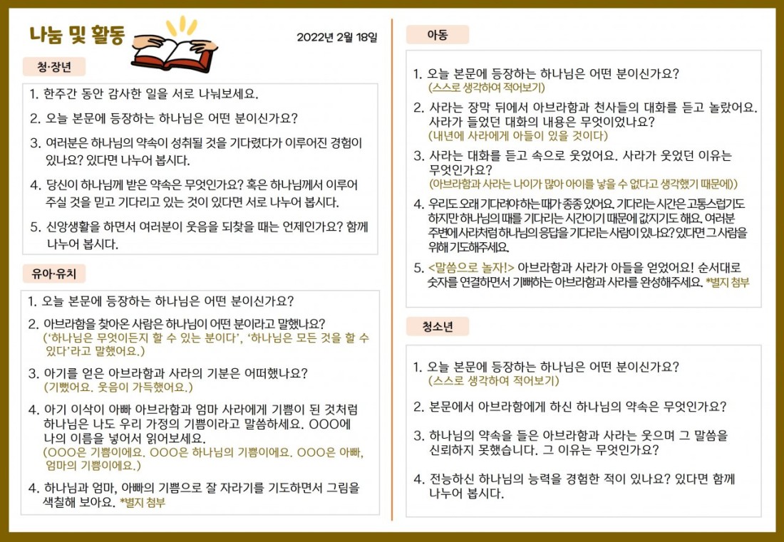 2022. 2. 18. 가정예배지 페이지 정보 조회Hit 347회 작성일Date 22-02-23 16:43 본문 목록 이전글 2022. 2. 25. 가정예배지 22.02.23 다음글 2022.2. 11. 가정예배지 22.02.23