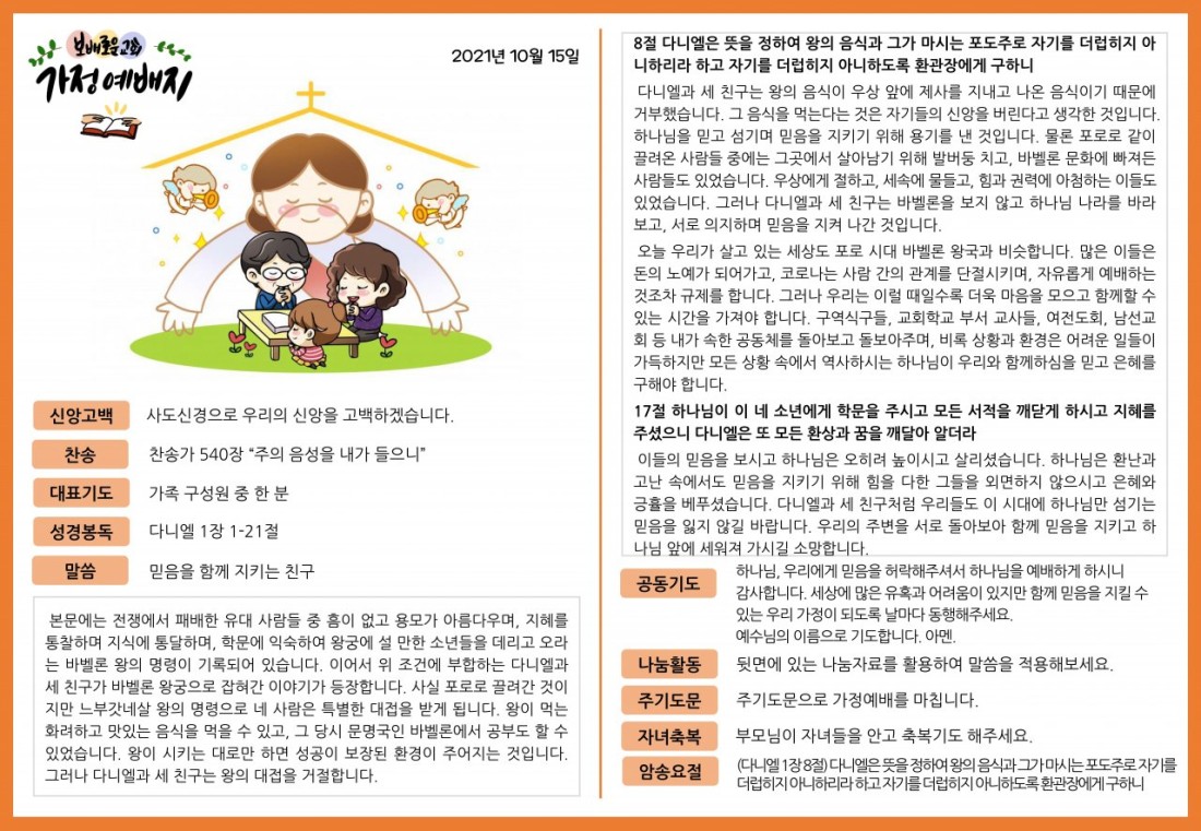 2021. 10. 15. 가정예배지 페이지 정보 조회Hit 301회 작성일Date 21-12-09 13:56 본문 목록 이전글2021. 10. 22. 가정예배지 21.12.09 다음글2021. 10. 8. 가정예배지 21.12.09