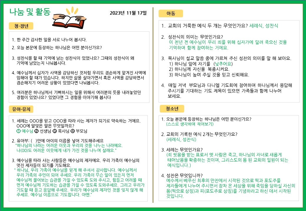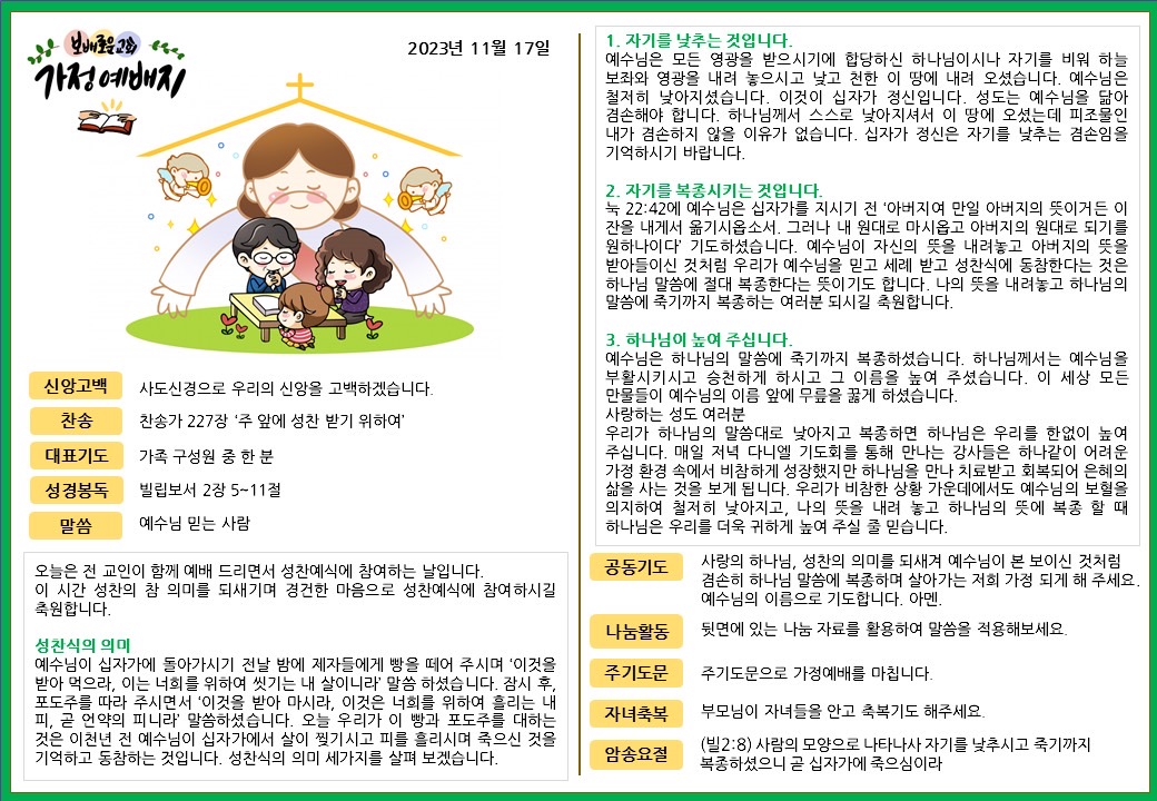 2023. 11. 17. 가정예배지 페이지 정보 조회Hit 289회 작성일Date 23-11-17 11:32 본문 목록 이전글2023. 11. 24. 가정예배지 23.11.30 다음글2023. 11. 10. 가정예배지 23.11.17