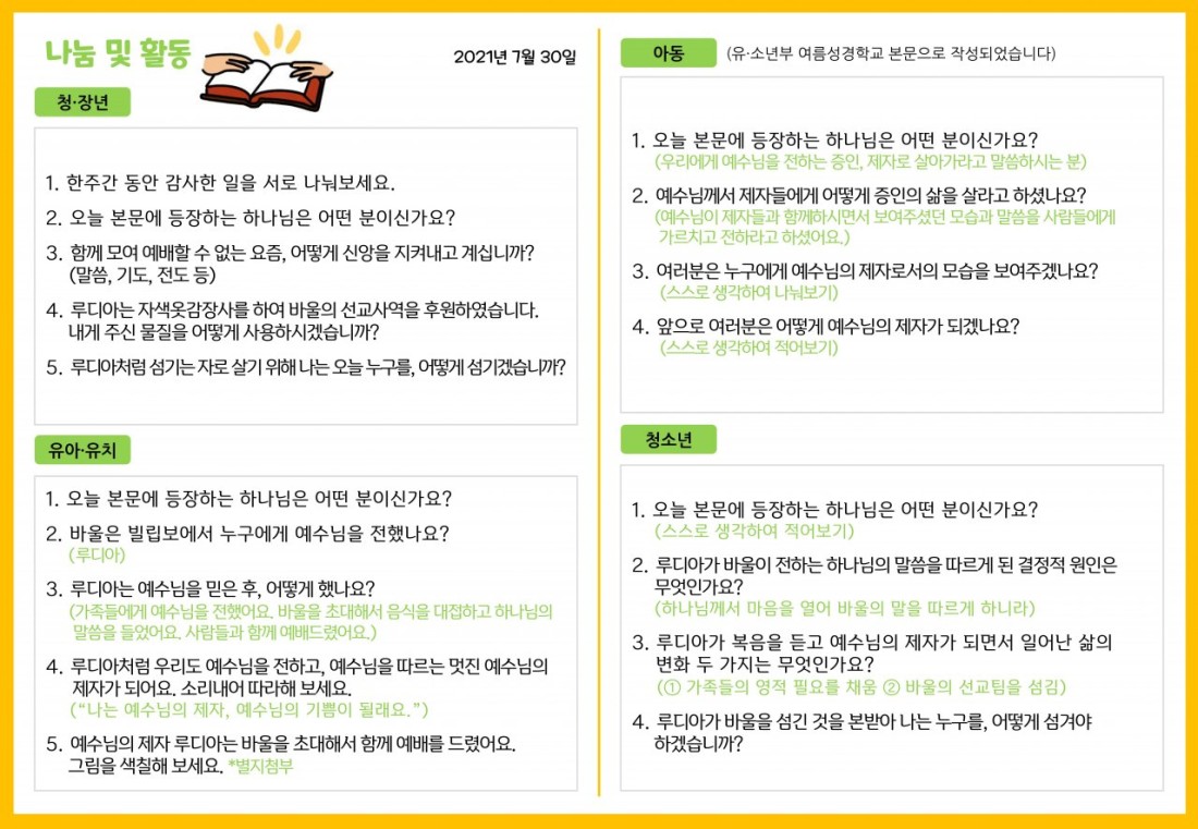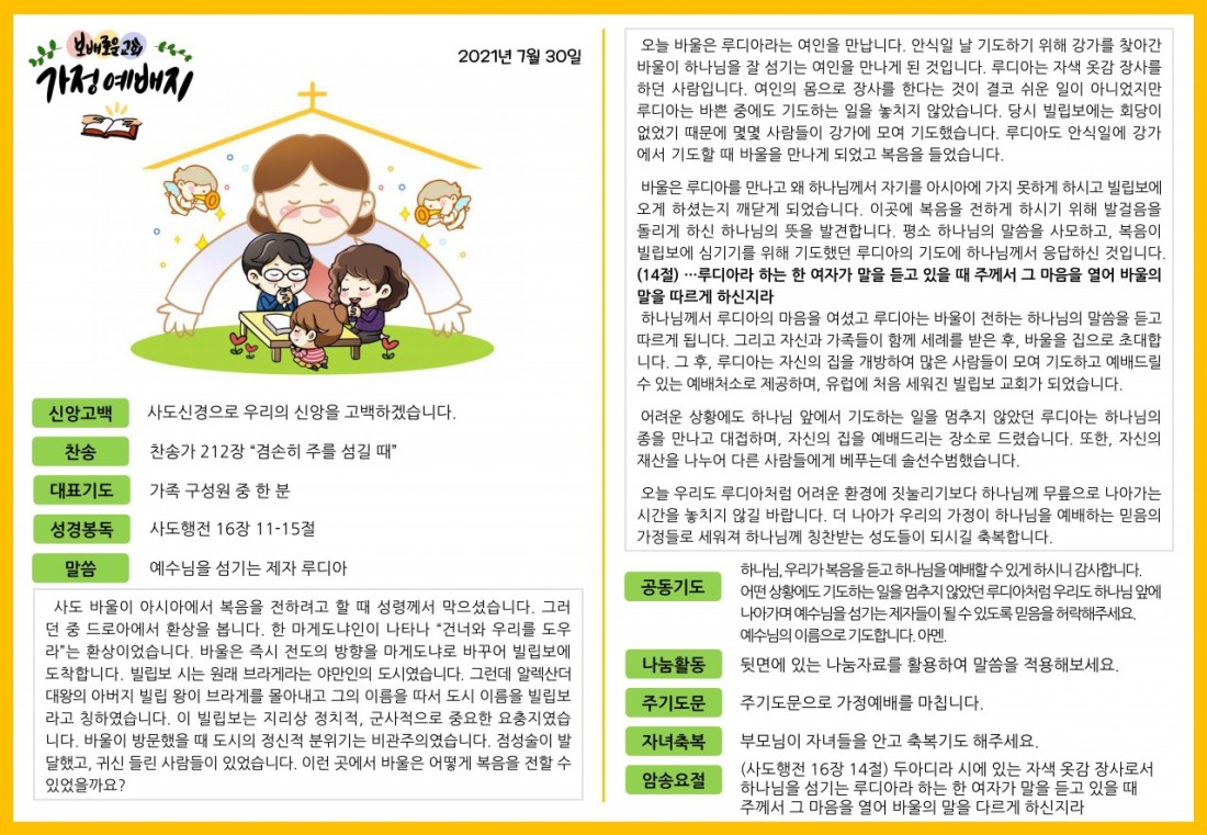 2021. 7. 30. 가정예배지 페이지 정보 조회Hit 434회 작성일Date 21-07-29 10:05 본문 목록 이전글2021. 8. 20. 가정예배지 21.12.09 다음글2021. 7. 23. 가정예배지 21.07.22