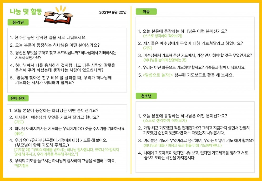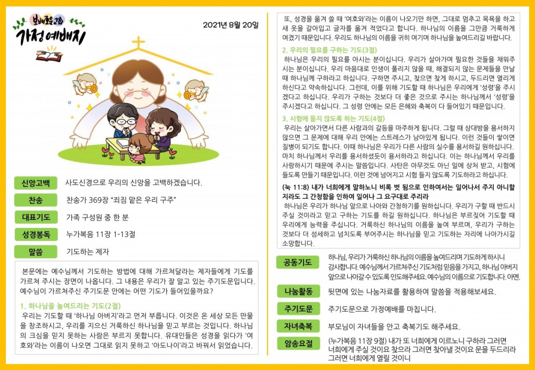 2021. 8. 20. 가정예배지 페이지 정보 조회Hit 347회 작성일Date 21-12-09 13:53 본문 목록 이전글2021. 9. 3. 가정예배지 21.12.09 다음글2021. 7. 30. 가정예배지 21.07.29