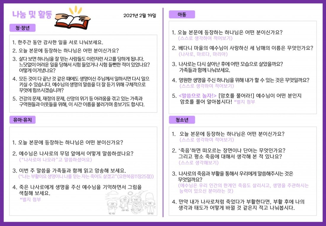 2021. 2. 19. 가정예배지 페이지 정보 조회Hit 349회 작성일Date 21-02-17 10:22 본문 목록 이전글2021. 2. 26. 가정예배지 21.02.24 다음글2021. 2. 12. 가정예배지 21.02.10