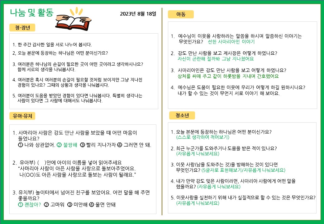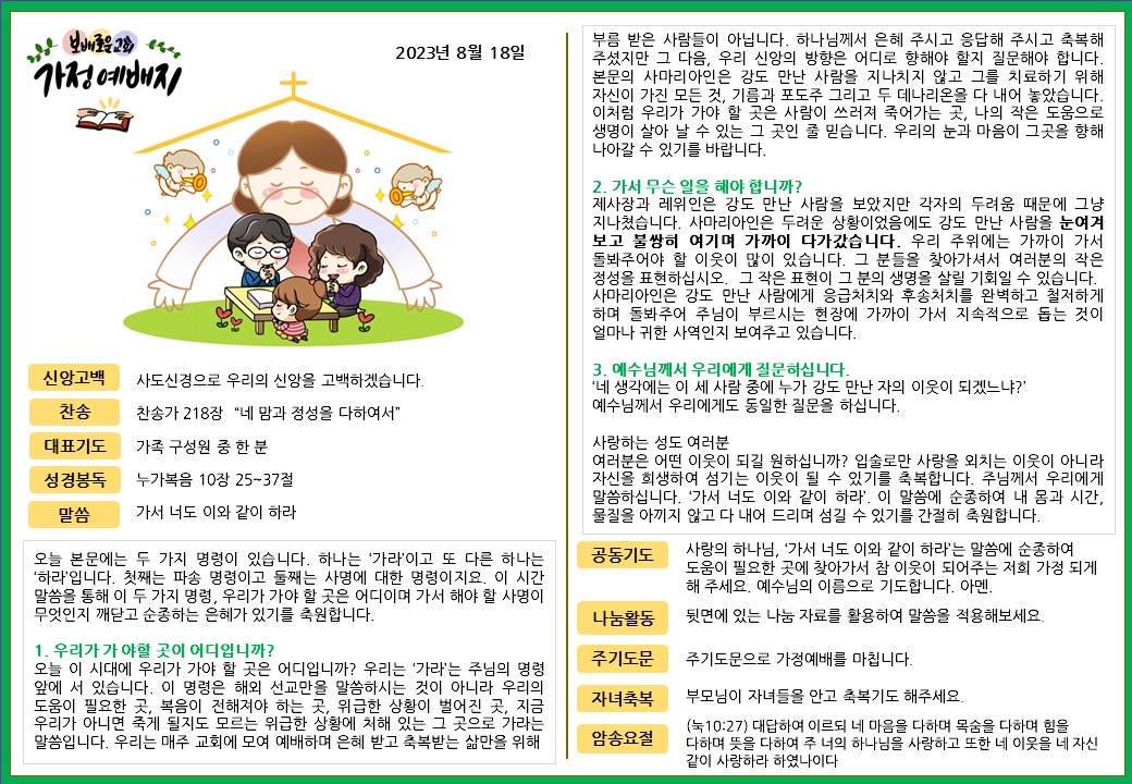 2023. 8. 11. 가정예배지 페이지 정보 조회Hit 411회 작성일Date 23-08-11 13:12 본문 목록 이전글2023. 8. 18. 가정예배지 23.10.05 다음글2023. 8. 4. 가정예배지 23.08.11