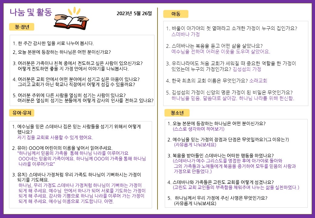 2023. 5. 26. 가정예배지 페이지 정보 조회Hit 299회 작성일Date 23-05-24 19:06 본문 목록 이전글2023. 6. 2. 가정예배지 23.06.02 다음글2023. 5. 19. 가정예배지 23.05.24