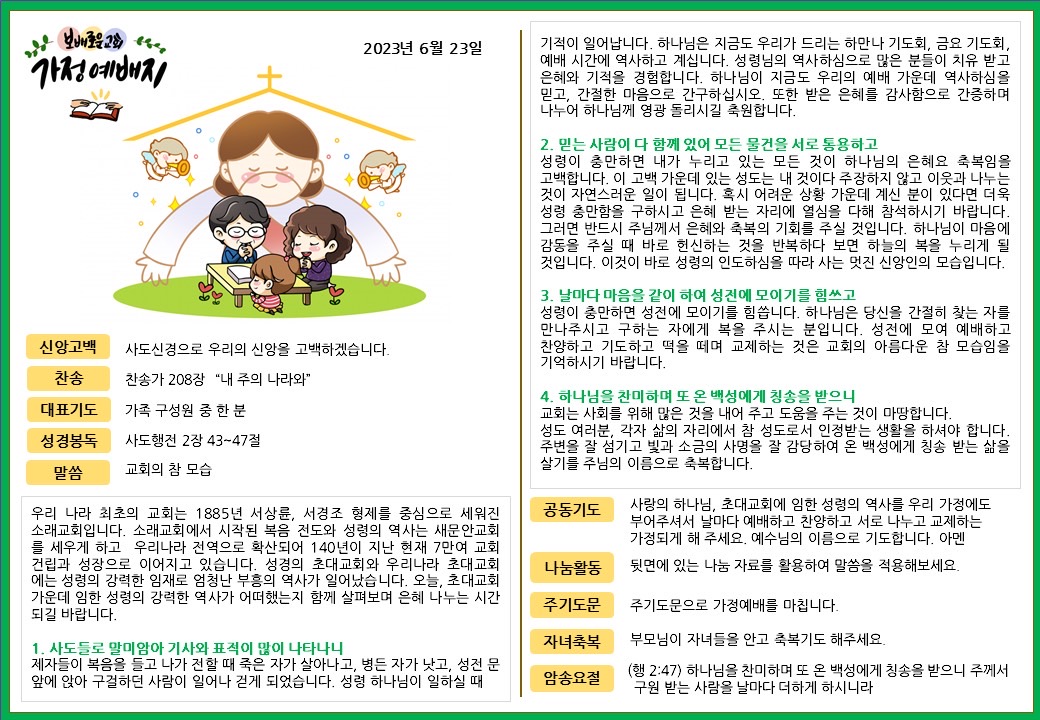 2023. 6. 23. 가정예배지 페이지 정보 조회Hit 300회 작성일Date 23-06-21 16:16 본문 목록 이전글2023. 6. 30. 가정예배지 23.06.29 다음글2023. 6. 16. 가정예배지 23.06.21