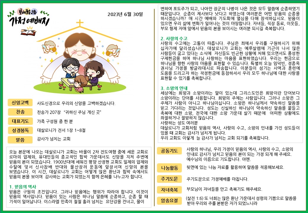 2023. 6. 30. 가정예배지 페이지 정보 조회Hit 307회 작성일Date 23-06-29 11:11 본문 목록 이전글2023. 7. 7. 가정예배지 23.07.06 다음글2023. 6. 23. 가정예배지 23.06.21