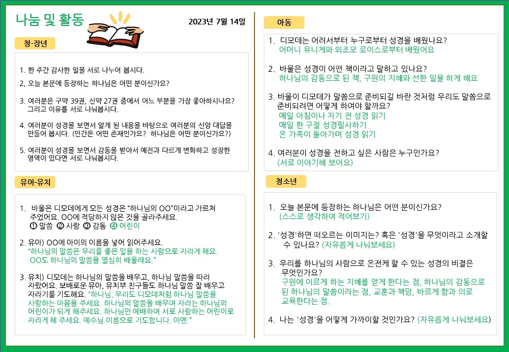 2023. 7. 14. 가정예배지 페이지 정보 조회Hit 295회 작성일Date 23-07-13 17:07 본문 목록 이전글2023. 7. 21. 가정예배지 23.07.27 다음글2023. 7. 7. 가정예배지 23.07.06