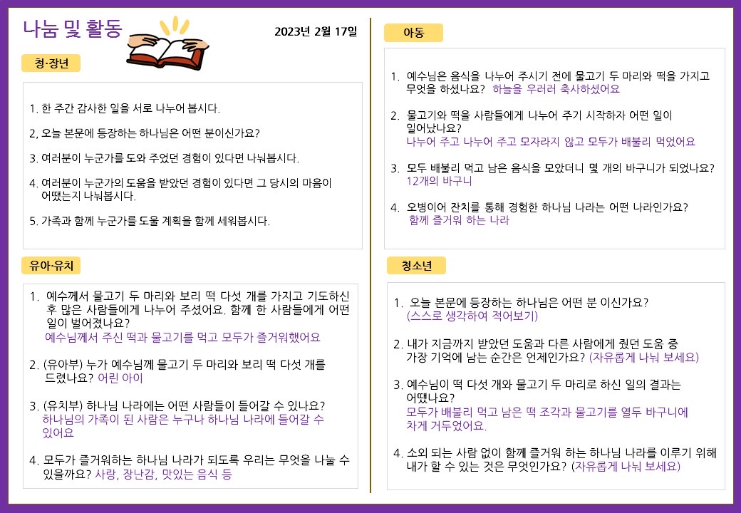 2023. 2. 17. 가정예배지 페이지 정보 조회Hit 292회 작성일Date 23-02-17 10:40 본문 목록 이전글2023. 2. 24. 가정예배지 23.03.02 다음글2023. 2. 10. 가정예배지 23.02.09