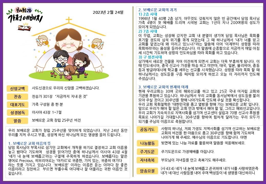 2023. 2. 24. 가정예배지 페이지 정보 조회Hit 290회 작성일Date 23-03-02 11:39 본문 목록 이전글2023. 3. 3. 가정예배지 23.03.02 다음글2023. 2. 17. 가정예배지 23.02.17