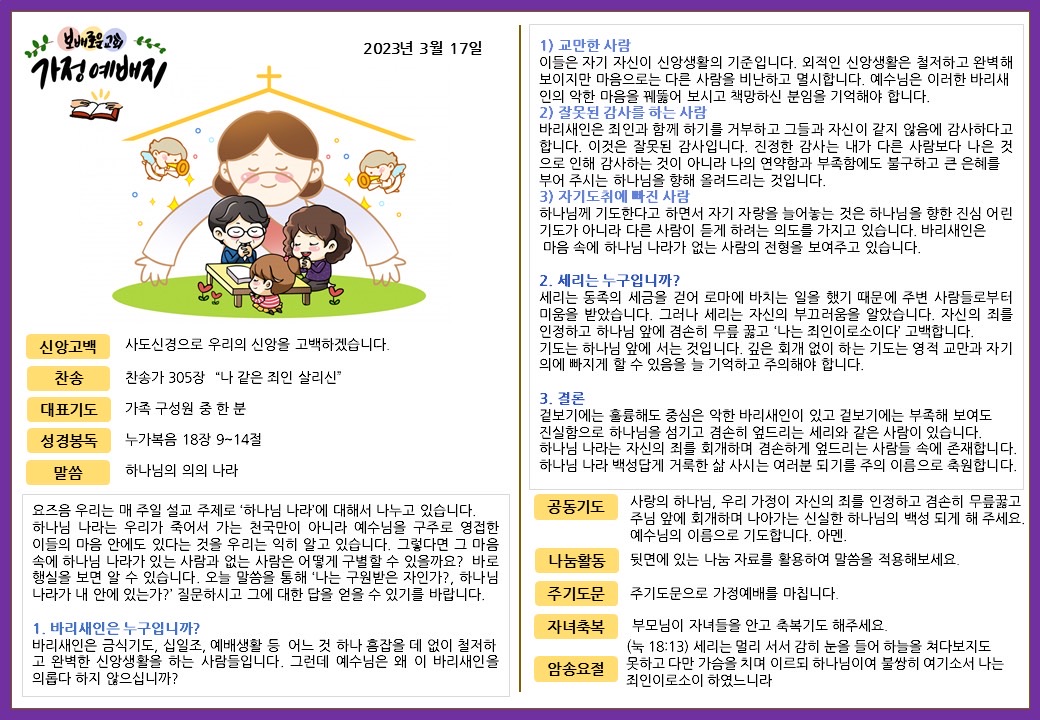 2023. 3. 17. 가정예배지 페이지 정보 조회Hit 288회 작성일Date 23-03-22 11:06 본문 목록 이전글2023. 3. 24. 가정예배지 23.03.22 다음글2023. 3. 10. 가정예배지 23.03.10