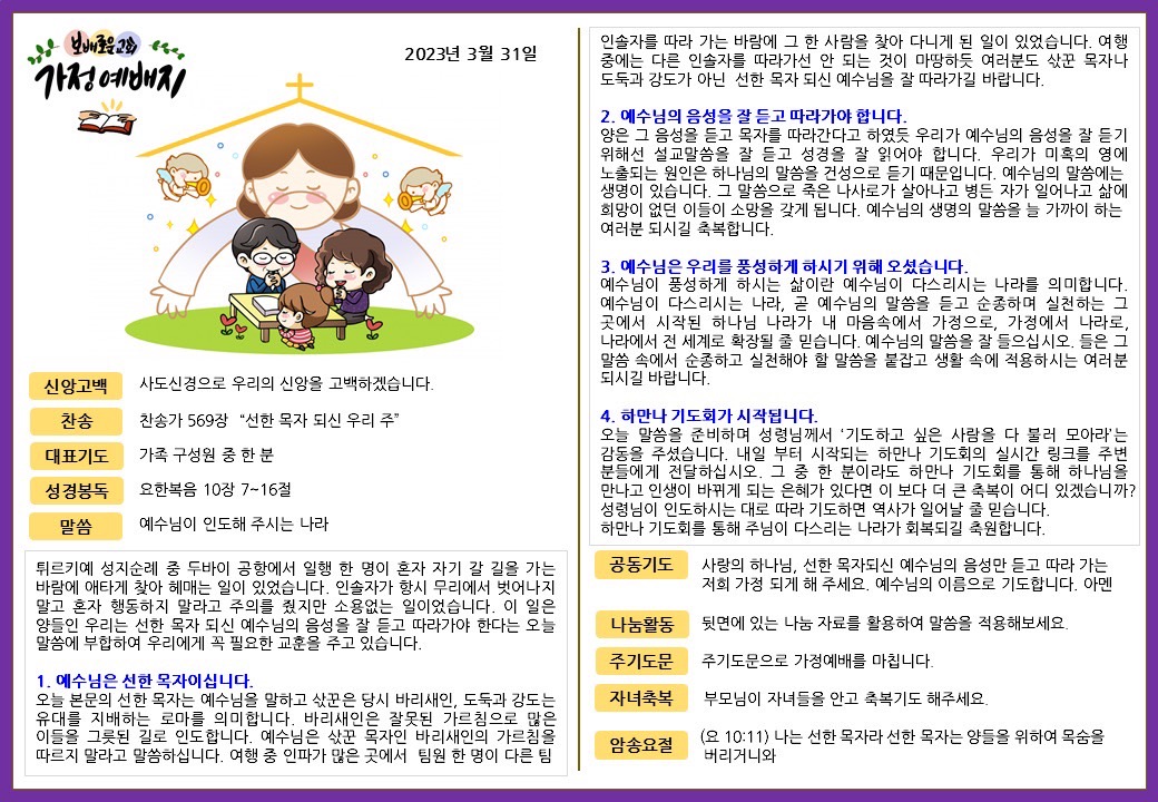 2023. 3. 31. 가정예배지 페이지 정보 조회Hit 294회 작성일Date 23-03-30 17:16 본문 목록 이전글2023. 4. 7. 가정예배지 23.04.06 다음글2023. 3. 24. 가정예배지 23.03.22