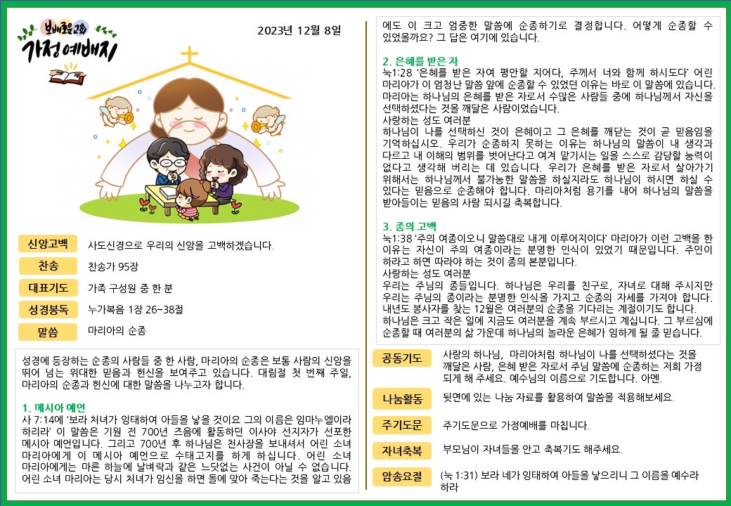 2023. 12. 8. 가정예배지 페이지 정보 조회Hit 330회 작성일Date 23-12-08 15:26 본문 목록 이전글2023. 12. 15. 가정예배지 23.12.30 다음글2023. 11. 30. 가정예배지 23.11.30