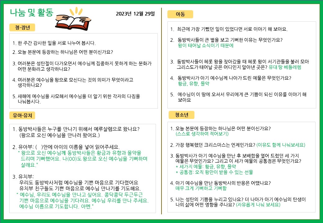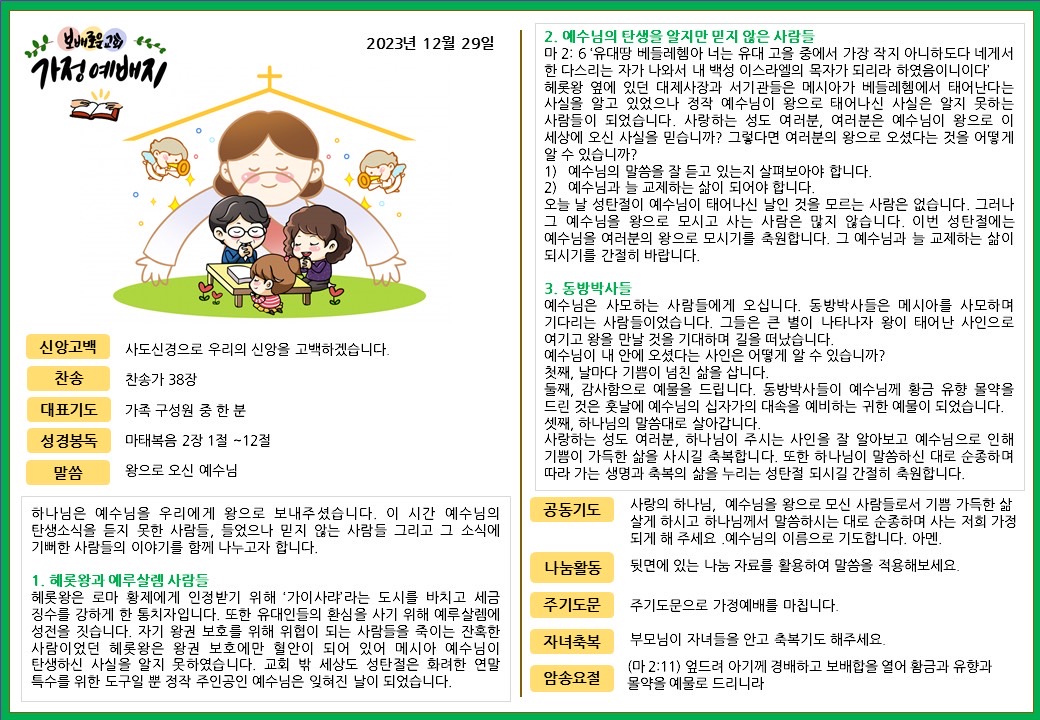 2023. 12. 30. 가정예배지 페이지 정보 조회Hit 301회 작성일Date 23-12-30 10:54 본문 목록 이전글2024. 01. 05 가정예배지 24.01.05 다음글2023. 12. 23. 가정예배지 23.12.30
