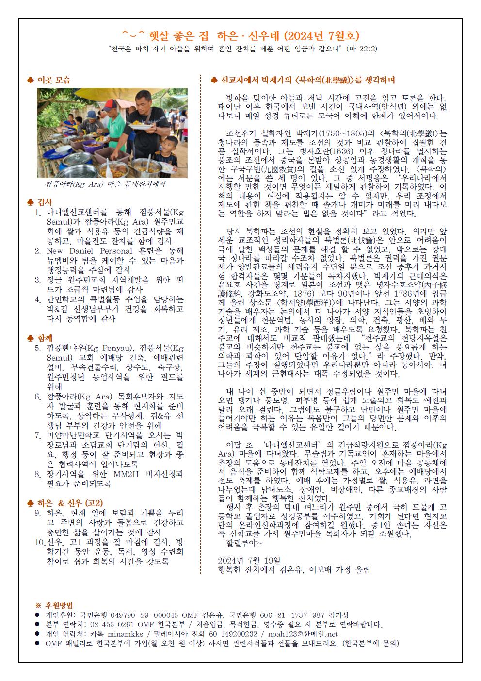 - 다음글캐나다 윤기태 (양희숙) 선교사 사역 소식 (2407) 24.07.07