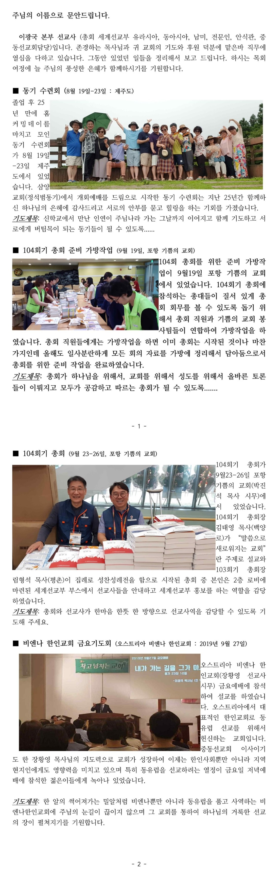 이광국본부선교사 후반기 사역보고