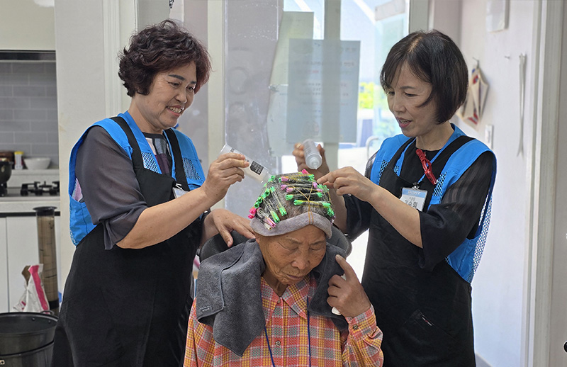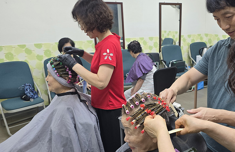 머리 손질을 통해 작지만 정성 어린 섬김을 전하고 있습니다.