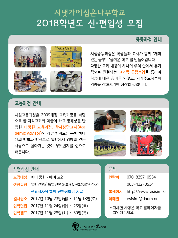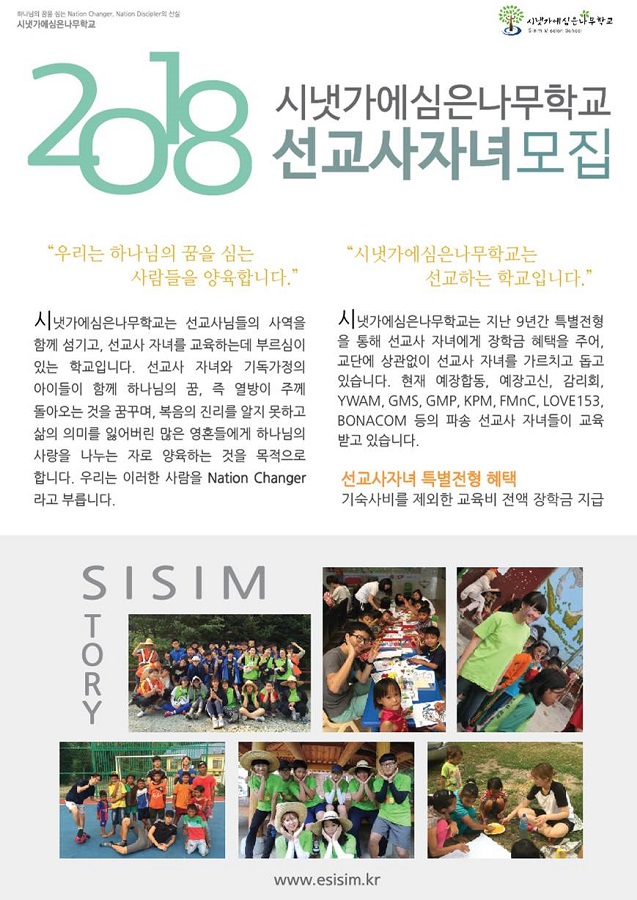 더 많은 선교사님의 자녀들이 함께 하나님의 꿈을 심는 자로 양육되어 지길 소망하며 본교에서는 기숙사비를 제외한 교육비 전액 장학금을 지급하고 있습니다. 교육의 필요가 있는 선교사님 가정들에 선교사자녀 모집에 관한 안내를 드립니다.