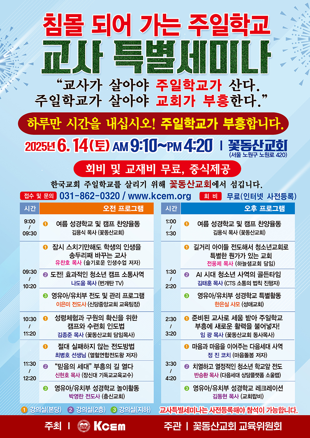2025여름 꽃동산성령체험캠프 / 교사세미나 안내 페이지 정보 조회Hit 519회 작성일Date 25-05-27 15:11 본문 목록 이전글3마을 공동체성경읽기_날짜별 성경읽기 표 25.12.25 다음글선교사님을 도와주세요!! 20.10.08