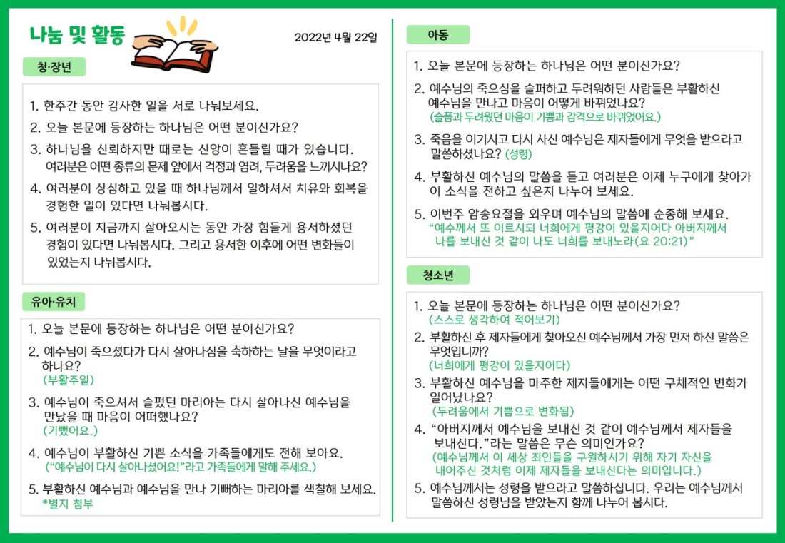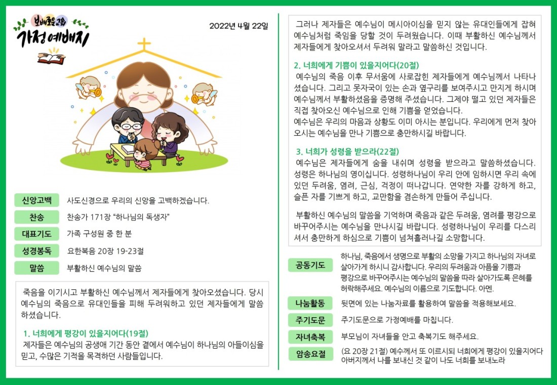 2022. 4. 22. 가정예배지 페이지 정보 조회Hit 256회 작성일Date 22-04-21 13:42 본문 목록 이전글2022. 4. 15. 가정예배지 22.04.14 다음글2022. 4. 29. 가정예배지 22.04.27