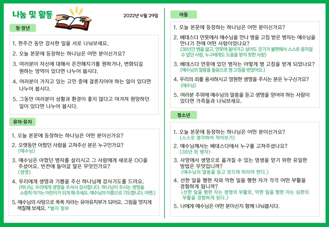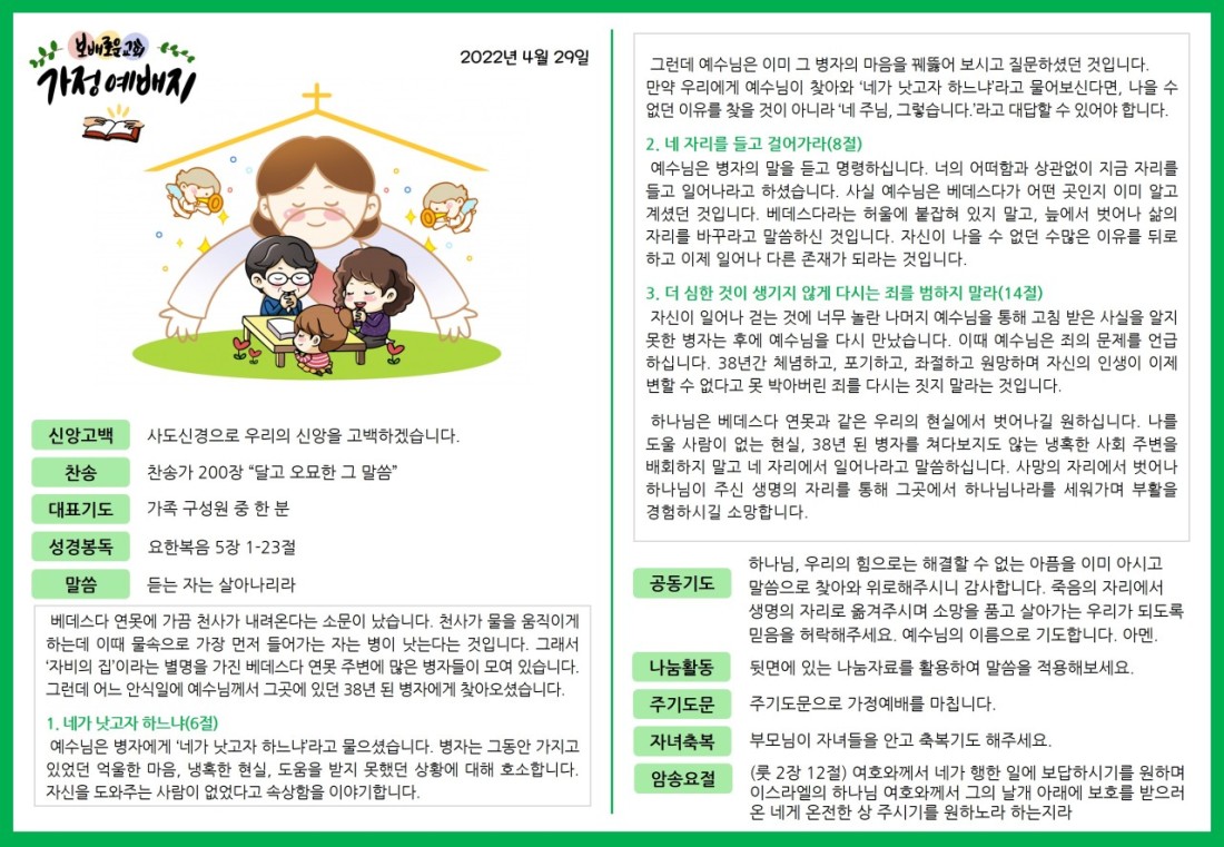 2022. 4. 29. 가정예배지 페이지 정보 조회Hit 250회 작성일Date 22-04-27 12:24 본문 목록 이전글2022. 4. 22. 가정예배지 22.04.21 다음글 2022. 5. 6. 가정예배지 22.05.04