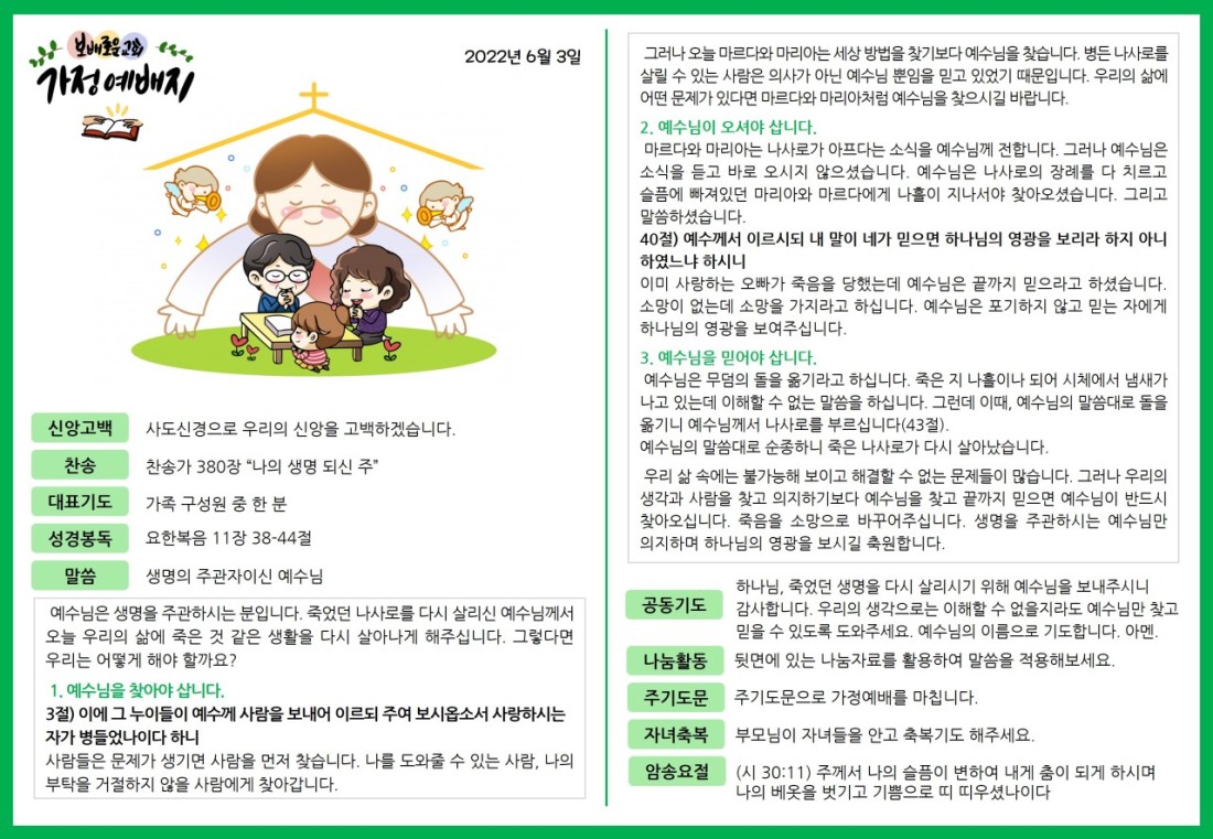 2022. 6. 3. 가정예배지 페이지 정보 조회Hit 243회 작성일Date 22-06-08 11:28 본문 목록 이전글2022. 5. 27. 가정예배지 22.06.08 다음글2022. 6. 10. 가정예배지 22.06.08