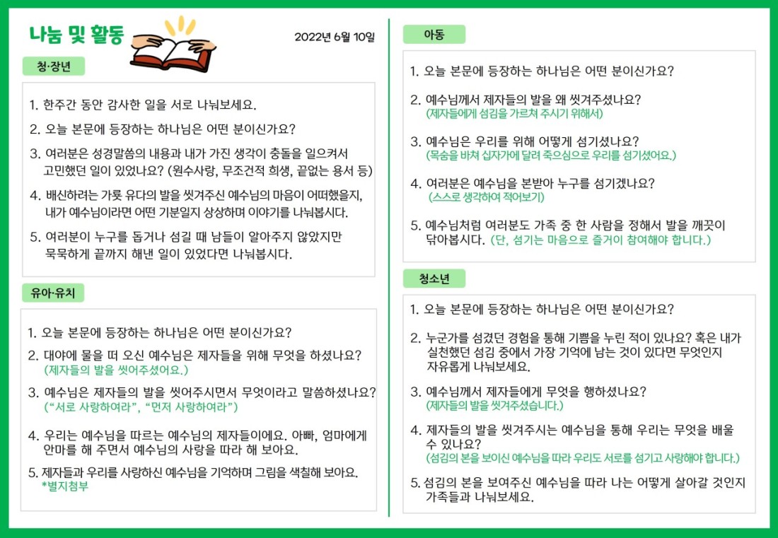 2022. 6. 10. 가정예배지 페이지 정보 조회Hit 249회 작성일Date 22-06-08 11:29 본문 목록 이전글2022. 6. 3. 가정예배지 22.06.08 다음글2022. 6. 17. 가정예배지 22.06.22