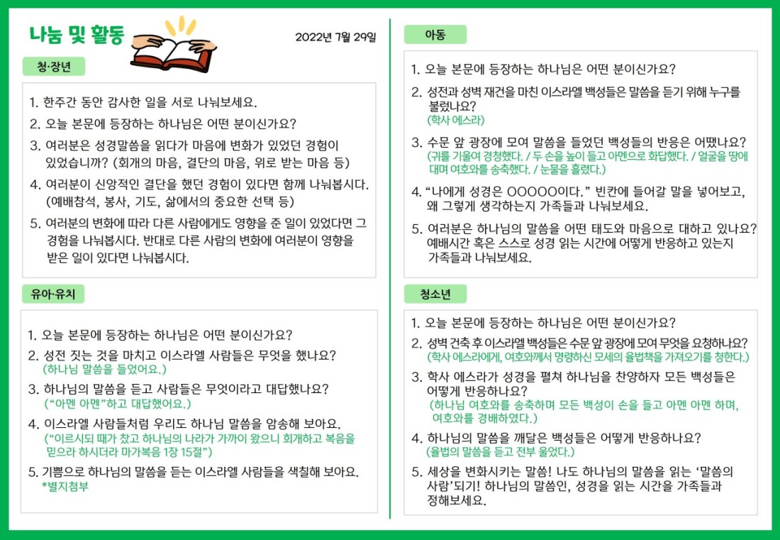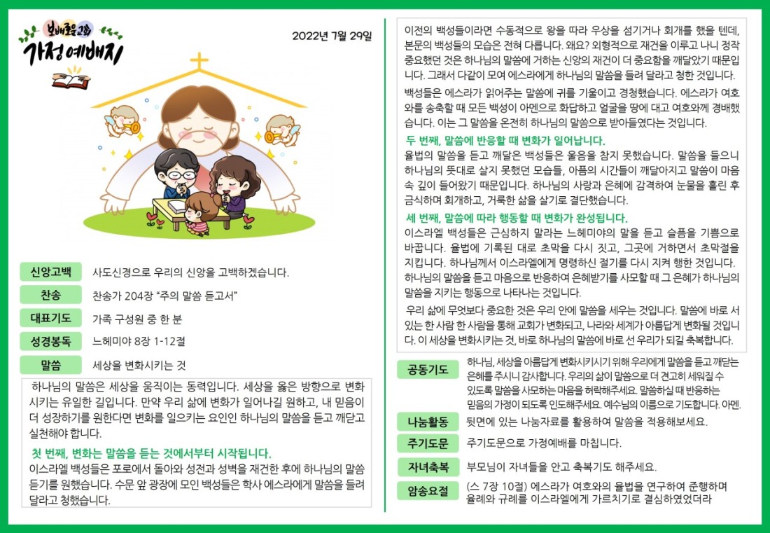2022. 7. 29. 가정예배지 페이지 정보 조회Hit 249회 작성일Date 22-08-03 10:24 본문 목록 이전글2022. 7. 22. 가정예배지 22.08.03 다음글2022. 8. 5. 가정예배지 22.08.03