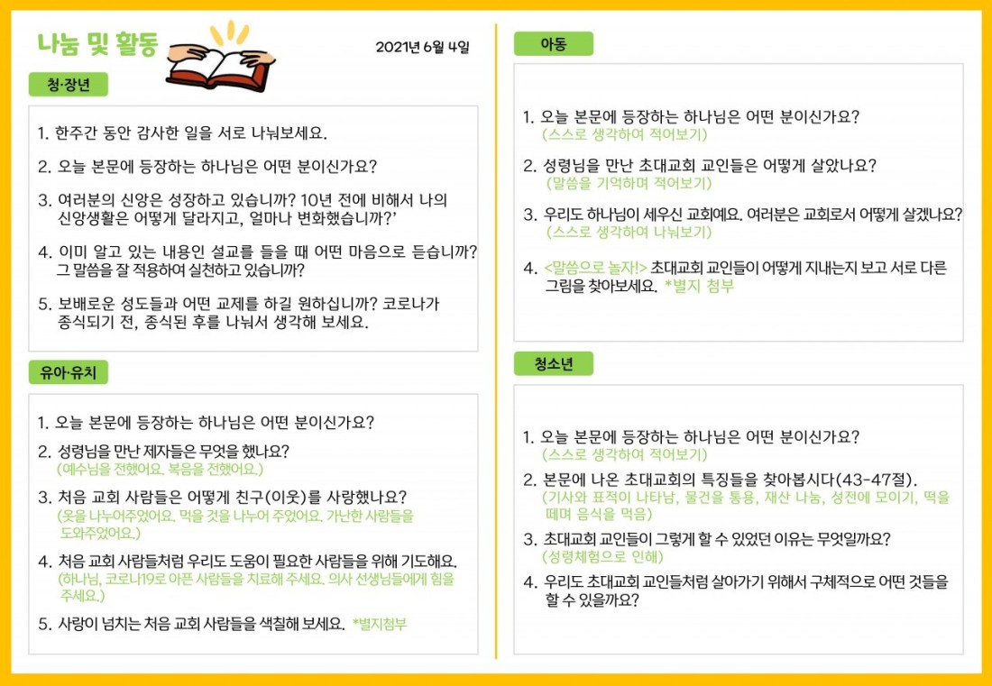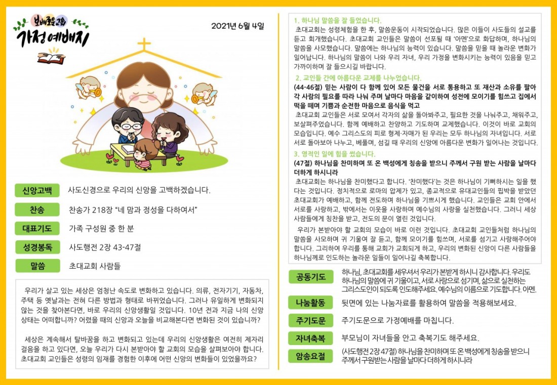 2021. 6. 4. 가정예배지 페이지 정보 조회Hit 282회 작성일Date 21-06-02 13:57 본문 목록 이전글2021. 5. 28. 가정예배지 21.05.27 다음글2021. 6. 11. 가정예배지 21.06.10