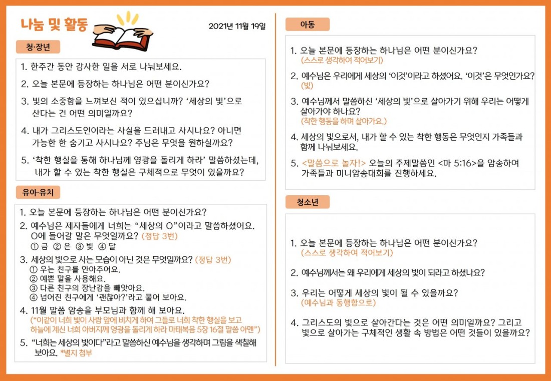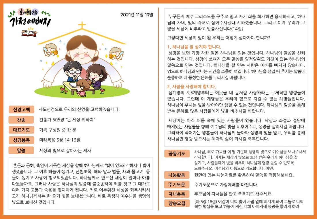 2021. 11. 19. 가정예배지 페이지 정보 조회Hit 282회 작성일Date 21-12-09 14:00 본문 목록 이전글2021. 11. 12. 가정예배지 21.12.09 다음글2021. 11. 26. 가정예배지 21.12.09