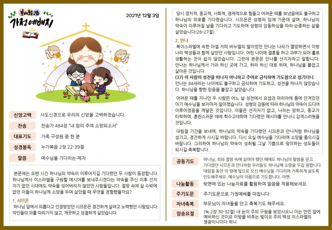 2021. 12. 3. 가정예배지 페이지 정보 조회Hit 284회 작성일Date 21-12-09 14:01 본문 목록 이전글2021. 11. 26. 가정예배지 21.12.09 다음글2021. 12. 10. 가정예배지 21.12.09
