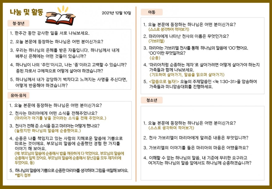 2021. 12. 10. 가정예배지 페이지 정보 조회Hit 296회 작성일Date 21-12-09 14:01 본문 목록 이전글2021. 12. 3. 가정예배지 21.12.09 다음글2021. 12. 17. 가정예배지 21.12.16