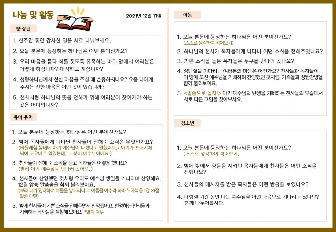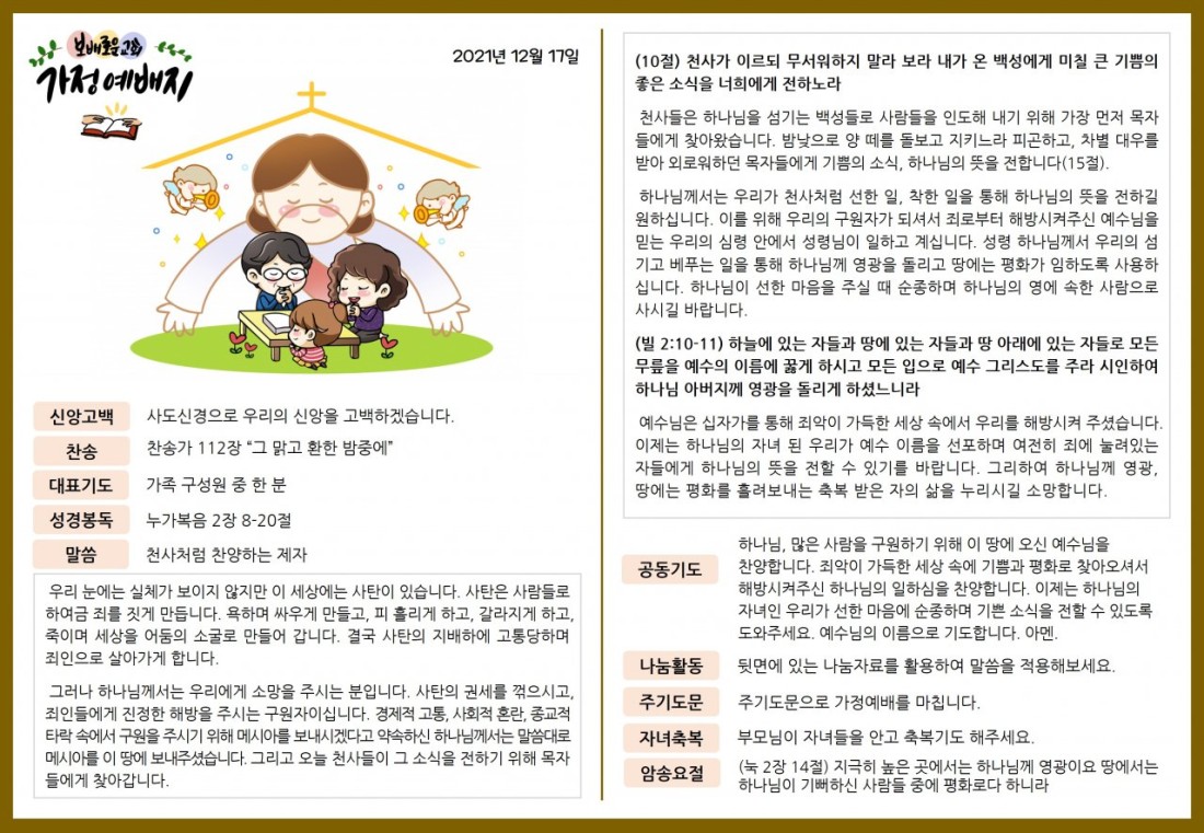 2021. 12. 17. 가정예배지 페이지 정보 조회Hit 306회 작성일Date 21-12-16 13:54 본문 목록 이전글2021. 12. 10. 가정예배지 21.12.09 다음글 2022. 1. 7. 가정예배지 22.01.05