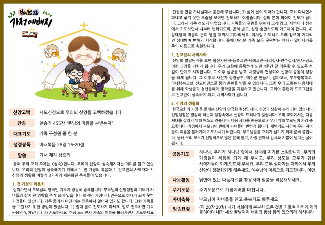 2022. 1. 14. 가정예배지 페이지 정보 조회Hit 274회 작성일Date 22-01-12 21:10 본문 목록 이전글 2022. 1. 7. 가정예배지 22.01.05 다음글2022. 1. 21. 가정예배지 22.01.19