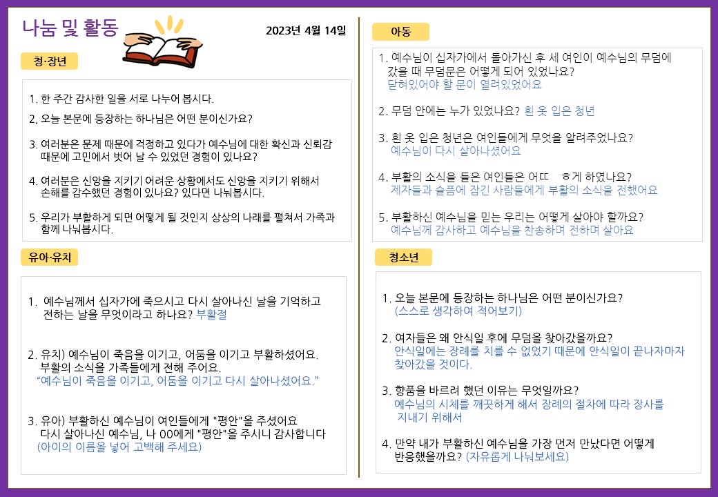 2023. 4. 14. 가정예배지 페이지 정보 조회Hit 228회 작성일Date 23-04-13 16:01 본문 목록 이전글2023. 4. 21. 가정예배지 23.04.20 다음글2023. 4. 7. 가정예배지 23.04.06