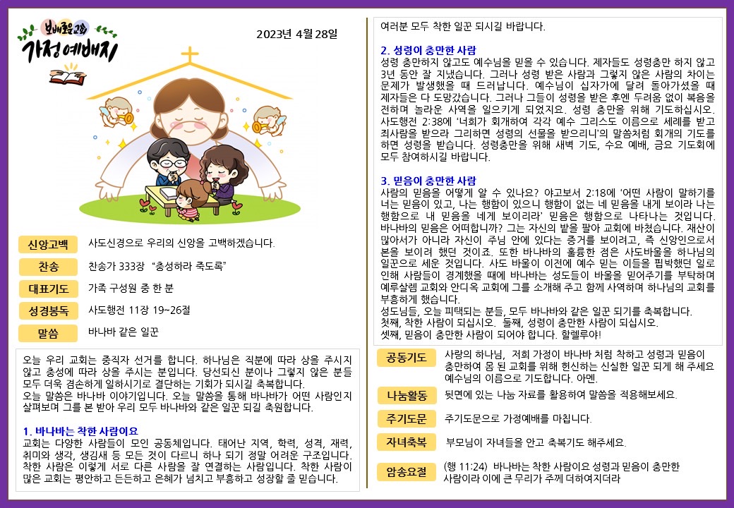 2023. 4. 28. 가정예배지 페이지 정보 조회Hit 232회 작성일Date 23-04-28 15:43 본문 목록 이전글2023. 5. 5. 가정예배지 23.05.11 다음글2023. 4. 21. 가정예배지 23.04.20