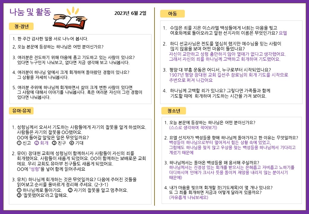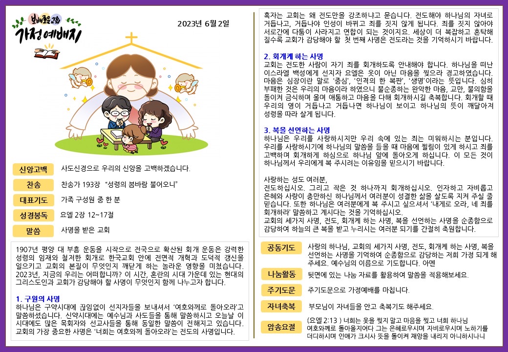 2023. 6. 2. 가정예배지 페이지 정보 조회Hit 225회 작성일Date 23-06-02 10:19 본문 목록 이전글2023. 6. 9. 가정예배지 23.06.09 다음글2023. 5. 26. 가정예배지 23.05.24