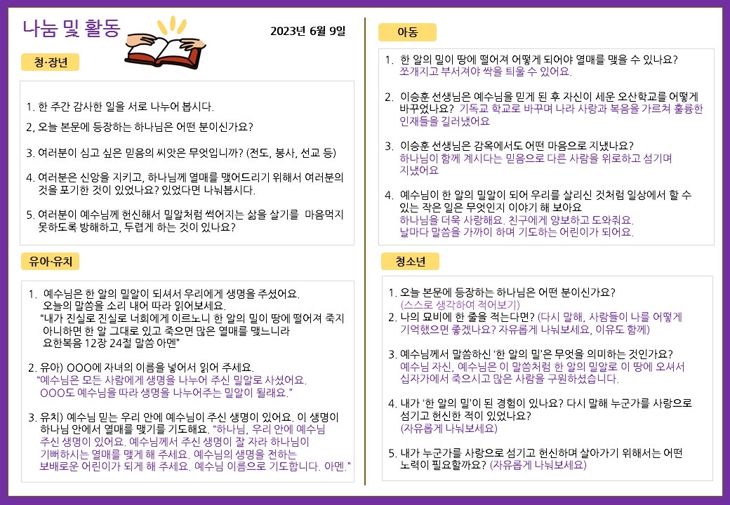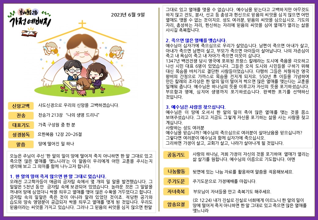 2023. 6. 9. 가정예배지 페이지 정보 조회Hit 244회 작성일Date 23-06-09 10:14 본문 목록 이전글2023. 6. 16. 가정예배지 23.06.21 다음글2023. 6. 2. 가정예배지 23.06.02