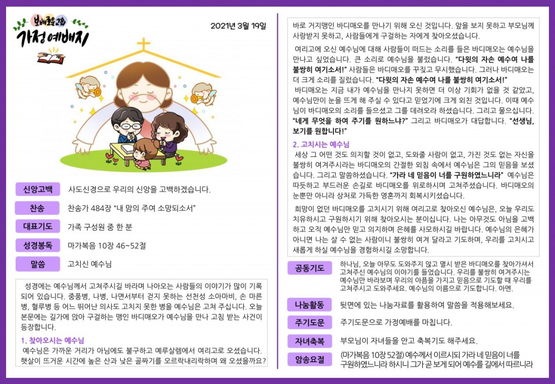 2021. 3. 19. 가정예배지 페이지 정보 조회Hit 315회 작성일Date 21-03-17 10:33 본문 목록 이전글2021. 3. 12. 가정예배지 21.03.10 다음글2021. 3. 26. 가정예배지 21.03.24