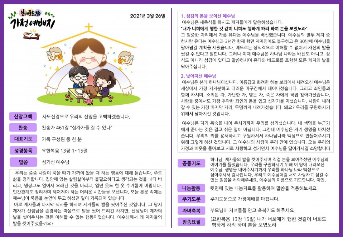 2021. 3. 26. 가정예배지 페이지 정보 조회Hit 311회 작성일Date 21-03-24 10:35 본문 목록 이전글2021. 3. 19. 가정예배지 21.03.17 다음글2021. 4. 2. 가정예배지 21.03.31