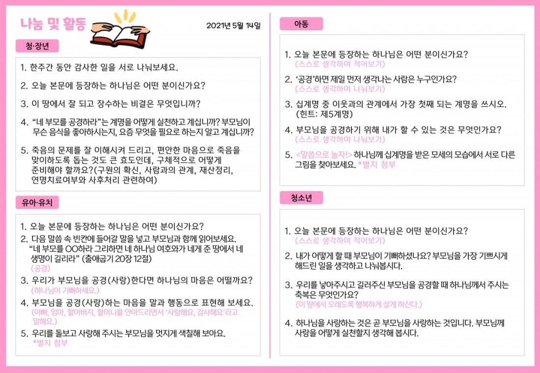 2021. 5. 14. 가정예배지 페이지 정보 조회Hit 268회 작성일Date 21-05-20 13:51 본문 목록 이전글2021. 5. 7. 가정예배지 21.05.05 다음글2021. 5. 21. 가정예배지 21.05.20